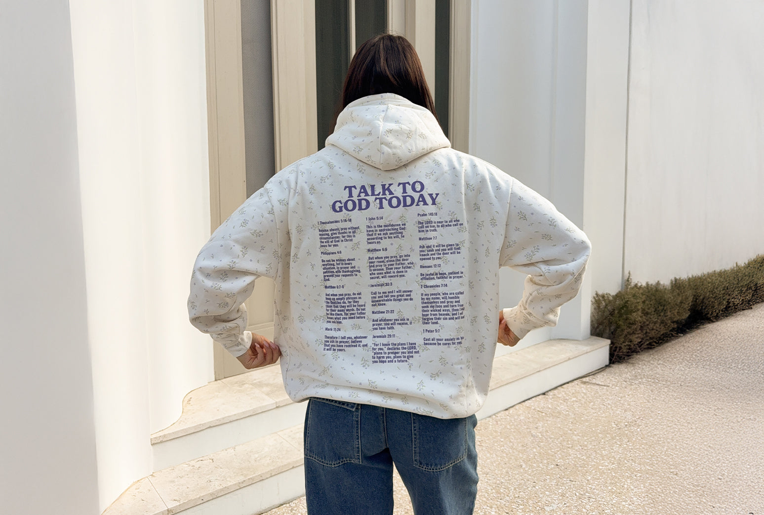 I absolutely love this jacket; 1, it’s the perfect oversized jacket and 2, I feel like everywhere I wear it I’m sharing the good news! A friendly reminder that Jesus wants to be our friend, our comforter, share laughs and memories. I have to try not to where it everyday.