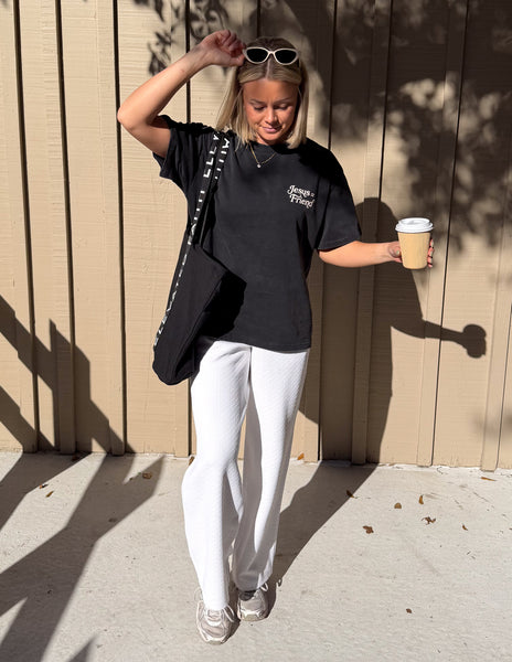 I absolutely love this jacket; 1, it’s the perfect oversized jacket and 2, I feel like everywhere I wear it I’m sharing the good news! A friendly reminder that Jesus wants to be our friend, our comforter, share laughs and memories. I have to try not to where it everyday.
